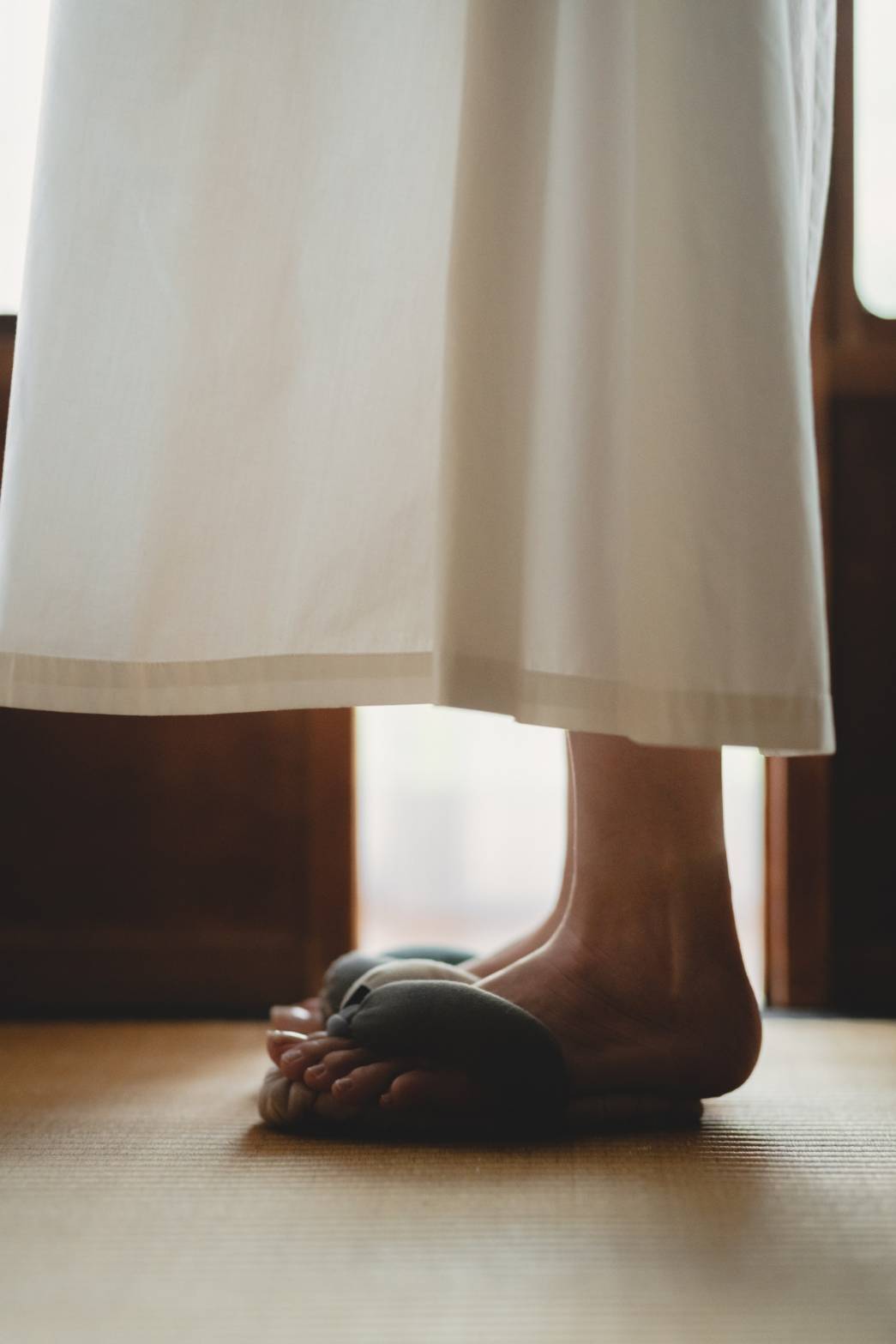 小さめの草履に素足でそっと乗ると、足指が自然に大地をつかみ、
